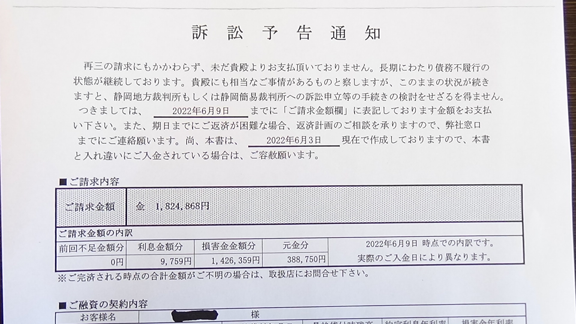 しかも、そこには元金に加えて驚くほど高額な遅延損害金が上乗せされていて、金額らんを見るだけで、ビビッてしまう人も多いようです。