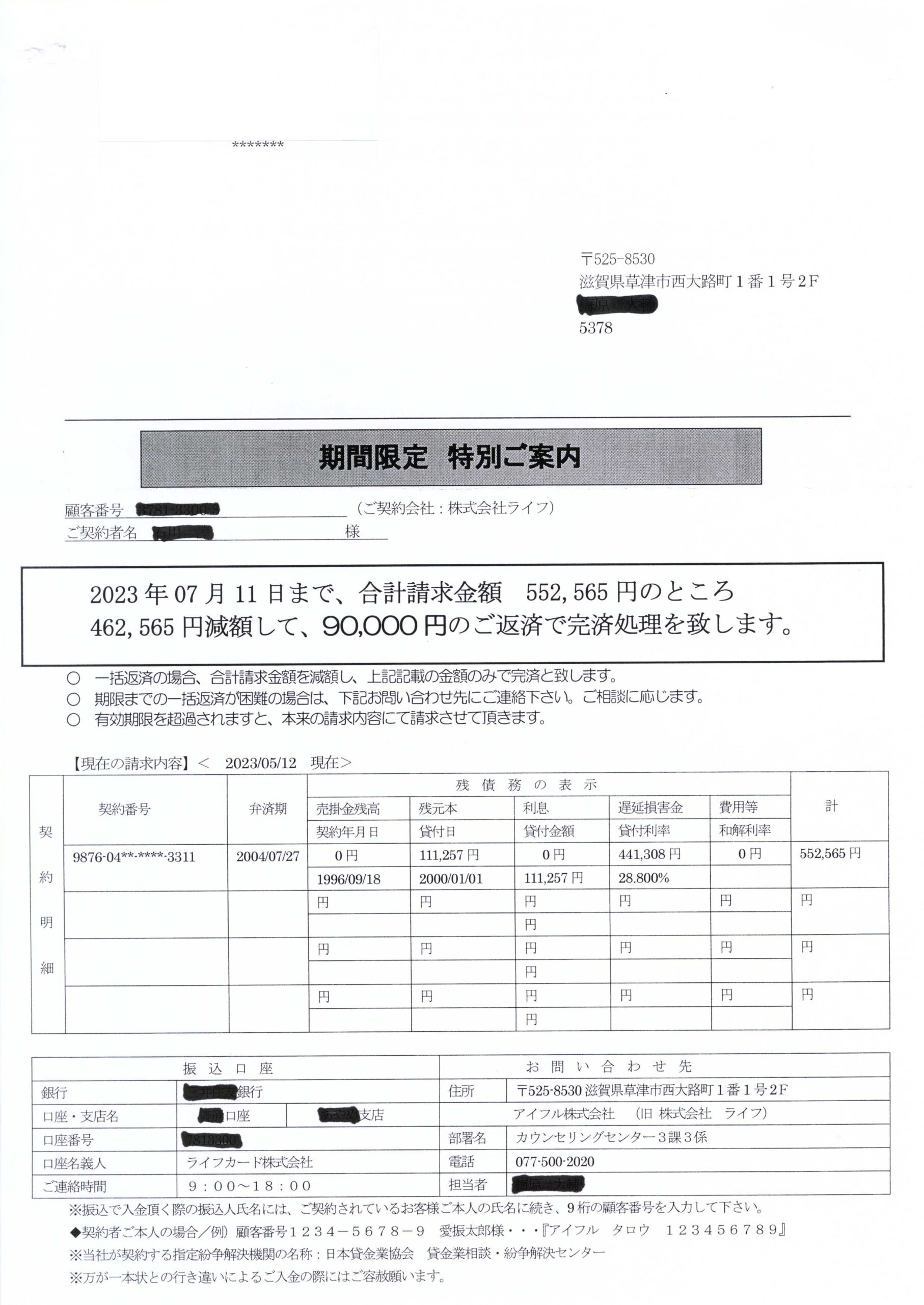 Q アイフルから「期間限定 特別ご案内」と言う書面が届いたら?