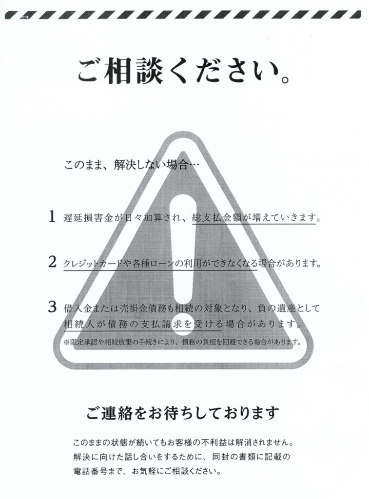 ここでは参考までに「ご相談」と言う書面を紹介します。